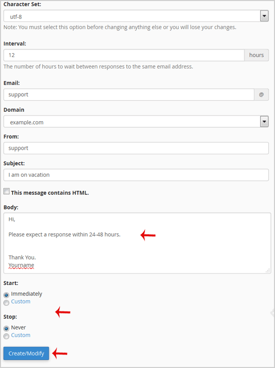 7. In the subject field enter your e-mail subject like "I am on vacation", etc.