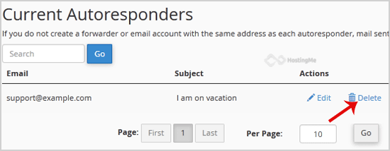 3. Next to autoresponder, click on "Delete" Autoresponder.