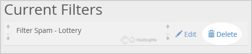 4. Under "Current Filters" You can see all of your existing filters, Click on "Delete" next to the appropriate one.