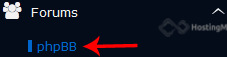 4. On the left side of your screen you should locate the "Forums" category. Click on it and then click on the "phpBB" link that will appear.