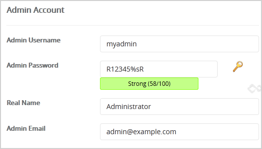 8. Under the "Admin Account" field enter the following information: