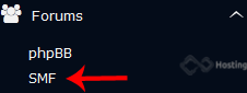 4. On the left side of your screen you should locate the "Forums" category. Click on it and then click on the "SMF" link that will appear.