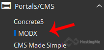 4. On the left side of your screen you should locate the "Portal/CMS" category. Click on it and then click on the "MODX" link that will appear.