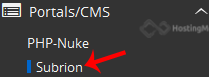 4. On the left side of your screen you should locate the "Portal/CMS" category. Click on it and then click on the "Subrion" link that will appear.