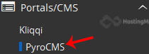 4. On the left side of your screen you should locate the "Portal/CMS" category. Click on it and then click on the "PyroCMS" link that will appear.