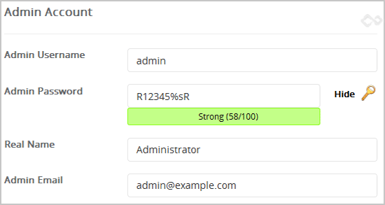 7. Under the "Admin Account" field enter the following information: