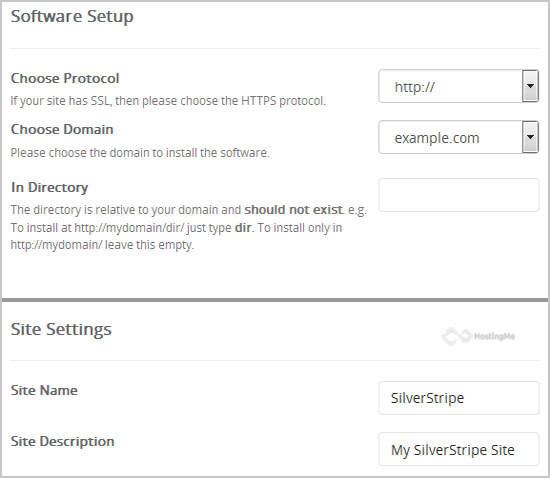 • Site Name: Enter the name of your website, such as "SilverStripe".