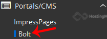 4. On the left side of your screen you should locate the "Portal/CMS" category. Click on it and then click on the "Bolt" link that will appear.