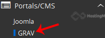 4. On the left side of your screen you should locate the "Portal/CMS" category. Click on it and then click on the "GRAV" link that will appear.